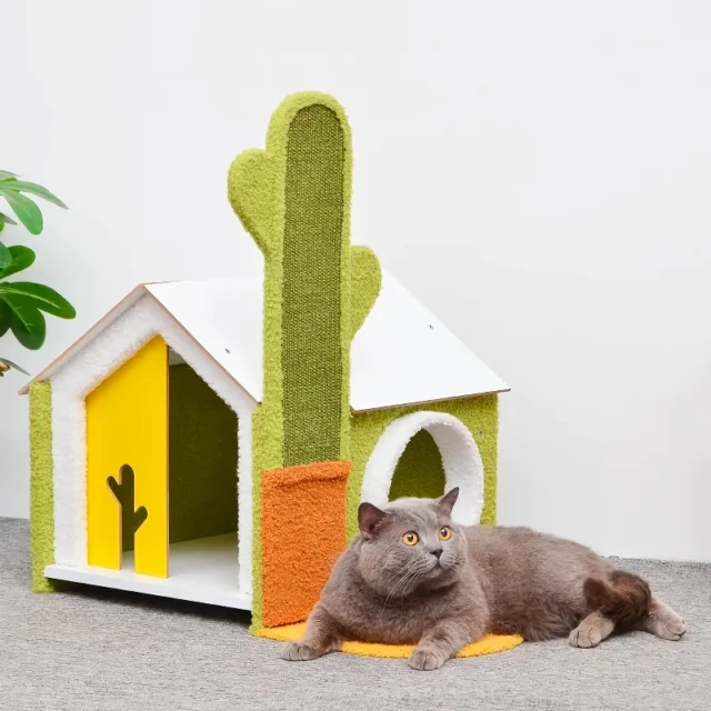 Cats have a natural urge to scratch, climb, and explore. Our Cactus Climbing Cat Toy and Scratching House perfectly caters to these instincts, providing your cat with a safe and engaging environment to play. The sturdy wood construction ensures stability as your cat leaps and climbs, while the cactus design offers multiple scratching surfaces to keep their claws healthy and your furniture safe.
