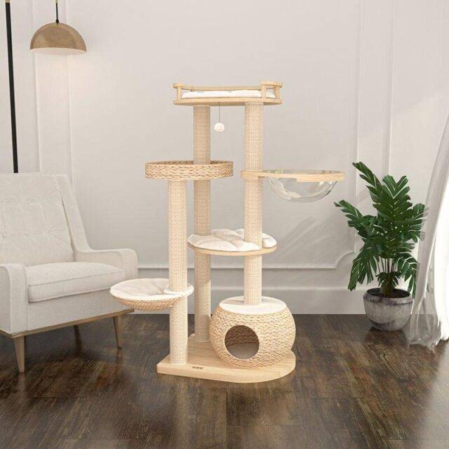 Introducing the perfect blend of luxury and adventure for your beloved pet – our Multi-Level Cat Scratcher Tree Tower. Designed with a deep understanding of your cat’s instinctual needs, this tower offers endless fun, comfort, and security. Crafted from the finest materials, it stands as a testament to durability and elegance in your home.