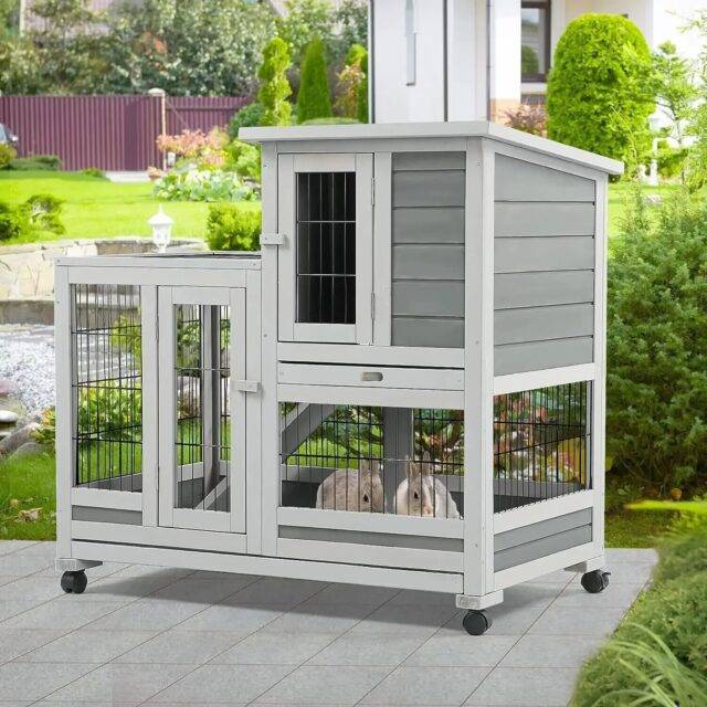 This rabbit hutch and guinea pig house is best used for small animals such as rabbits and guinea pigs who require a safe, comfortable, and engaging living environment. It’s perfect for pet owners looking for a high-quality, durable, and stylish home for their furry family members. Whether placed indoors or outdoors, this hutch provides your pets with a year-round haven.