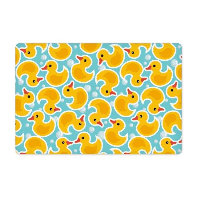 Duck Pattern Pet Food Mat – Yellow Duck Anti-Slip Pet Bowl Mats – Printed Pet Feeding Mat