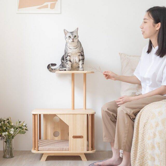 Our cat climbing frame stands out for its thoughtful design and superior materials. Made from eco-friendly wood and soft cloth, it ensures durability while being kind to the environment. The closed type cat bed tower features a spacious interior, perfect for play or a peaceful nap. Plus, its scratch-friendly surfaces provide a healthy outlet for your cat’s natural instincts.