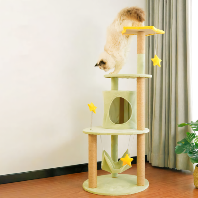 This Cat Climbing Tower is ideal for indoor use, providing your cat with a safe and entertaining space to explore. It’s perfect for all life stages, offering kittens a playful area to grow and explore, while adult cats enjoy the challenge of climbing and the comfort of the cozy house. Whether you’re looking to enrich your cat’s indoor environment or protect your furniture from scratches, our tower is the perfect solution.