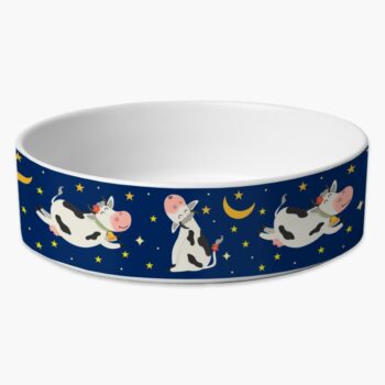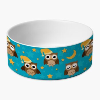 Owl Pattern Pet Bowl – Moon and Stars Dog Bowl – Graphic Pet Food Bowl