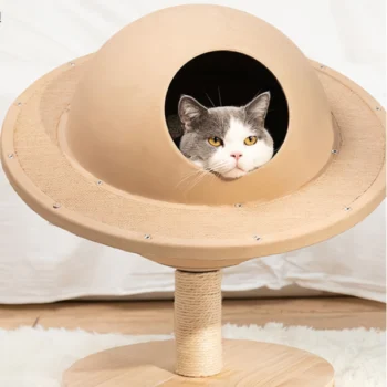 DIY Wooden Space Capsule Cat Nest & Climbing Rack with Flying Saucer Toy