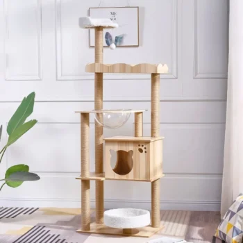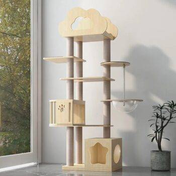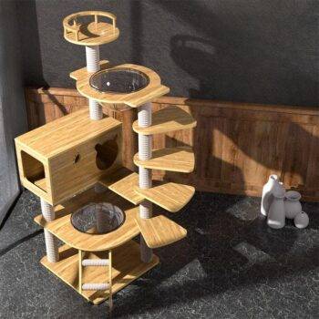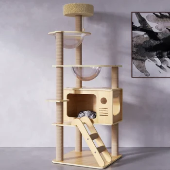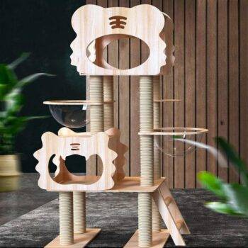 Luxury Solid Wood Cat Tower – Multi-Level Climbing Frame & Space Capsule Nest