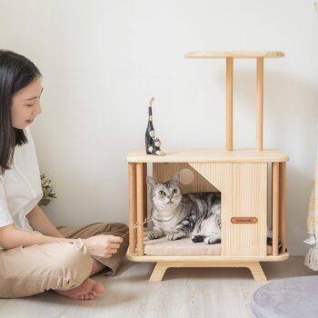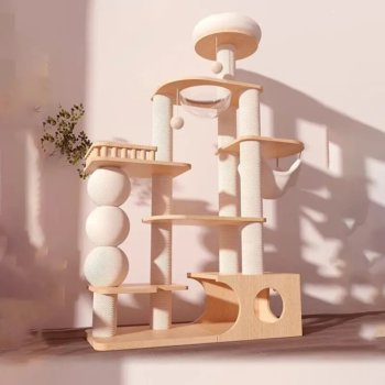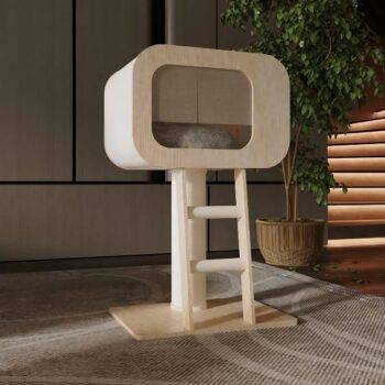 Luxury Solid Wood Cat Climbing Tower with Integrated Litter Capsule & Scratch-Resistant Features