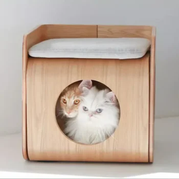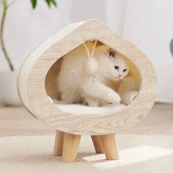 Luxury Solid Wood Cat Bed: Detachable & Washable, Four Seasons Comfort