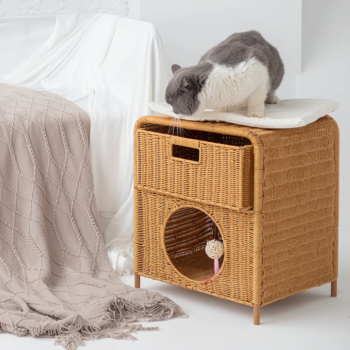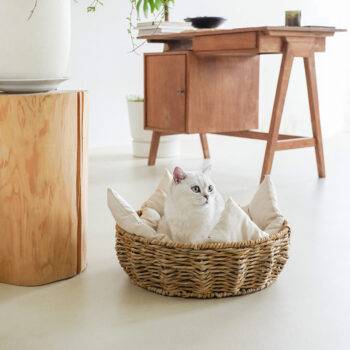 Summer Breathable Rattan Cat Cave Bed with Thickened Cushion