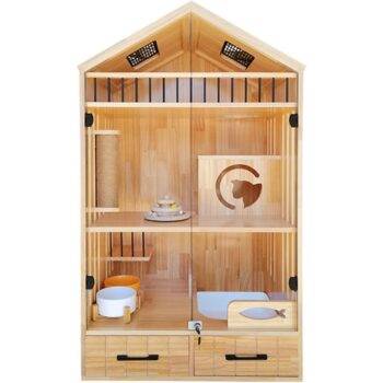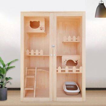 Luxurious Two-Layer Solid Wood Cat Villa with Integrated Toilet