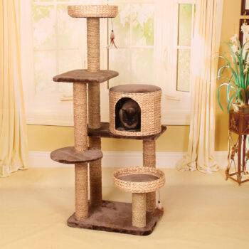 Luxury Banana Leaf Woven Cat Tree with Climbing Frame & Scratch Board