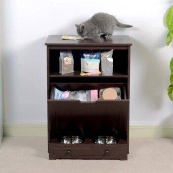 Space-Saving Pet Feeder Station with Dual Stainless Steel Bowls & Storage