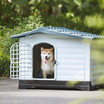 Multi-Functional Outdoor Pet House with Crate Bed & Toys for Dogs and Rabbits