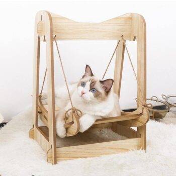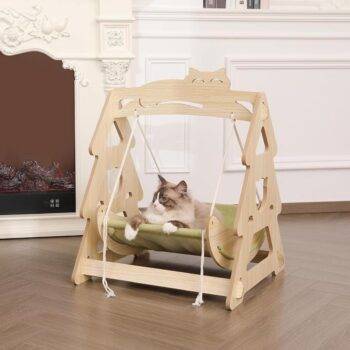 Cozy Gyro Cat Nest: All-Season Wooden Pet House & Egg Tart Bed