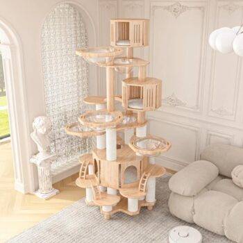 Luxurious Solid Wood Cat Climbing Tree with Multi-Level Platforms and Cozy Hideaways