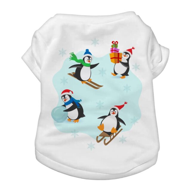 Skiing Penguin Dog T-Shirt – Cute Dog Shirt – Animal Print Dog Clothing