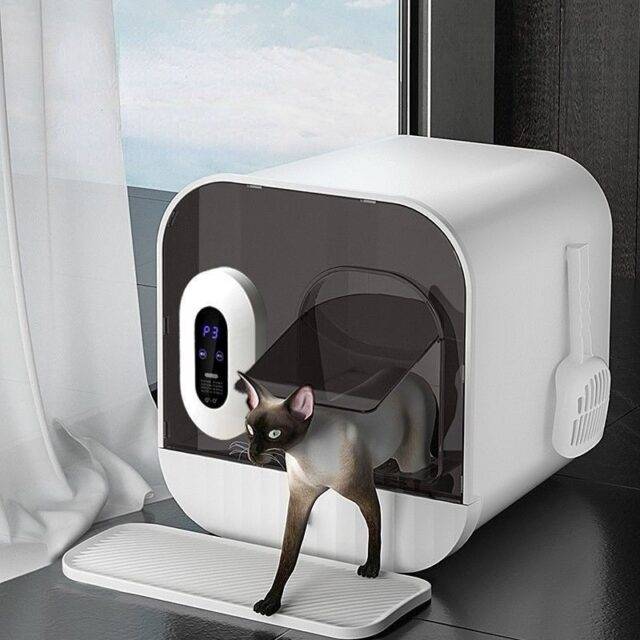 Introducing the Smart Automatic Cat Litter Box, a revolutionary solution designed to offer unparalleled convenience and hygiene for your feline friends. This cutting-edge, fully enclosed cat litter box is not just a bathroom for your pet; it’s a statement of modern pet care. Crafted with high-quality plastic and equipped with intelligent features, it promises to make litter box maintenance a thing of the past.