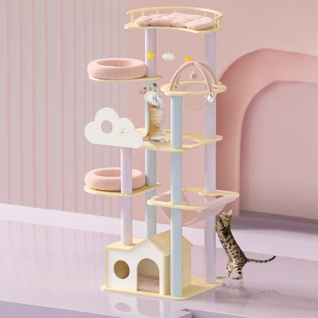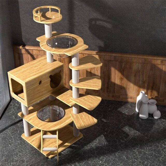 Transform your home into a feline paradise with the Solid Wood Cactus Cat Climbing Frame with Nest! Designed to cater to your cat’s instinctual need to climb, play, and relax, this multi-layer play tower is not just a piece of furniture but a complete entertainment and comfort zone for your beloved pet.